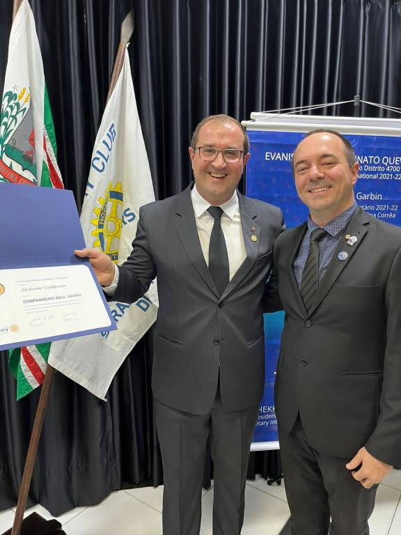 Quem está a frente do nosso Clube é o nosso querido companheiro Kleitton Adolfo Pan. Na ocasião os Companheiros Alberto Alban e Alciomir Calderan foram agraciados com o título Paul Harris.