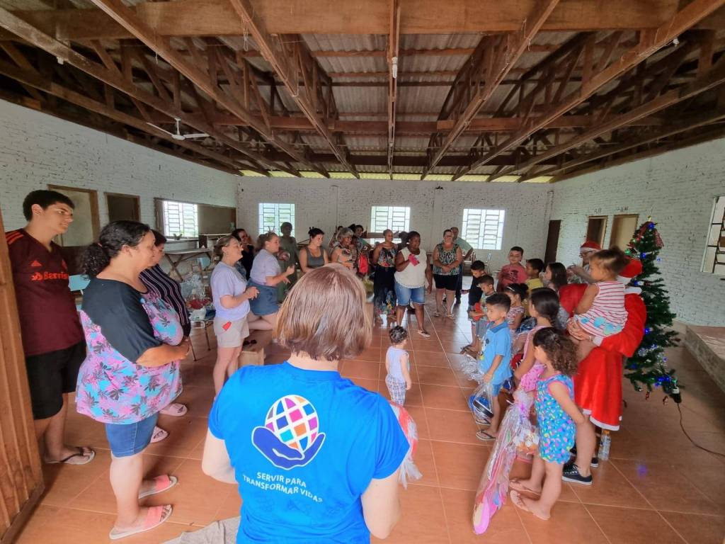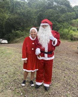 As crianças recepcionaram o Papai e Mamãe Noel com muito canto e alegria e receberam muitos presentes também! Obrigada a comunidade de São Roque pelo momento de confraternização!