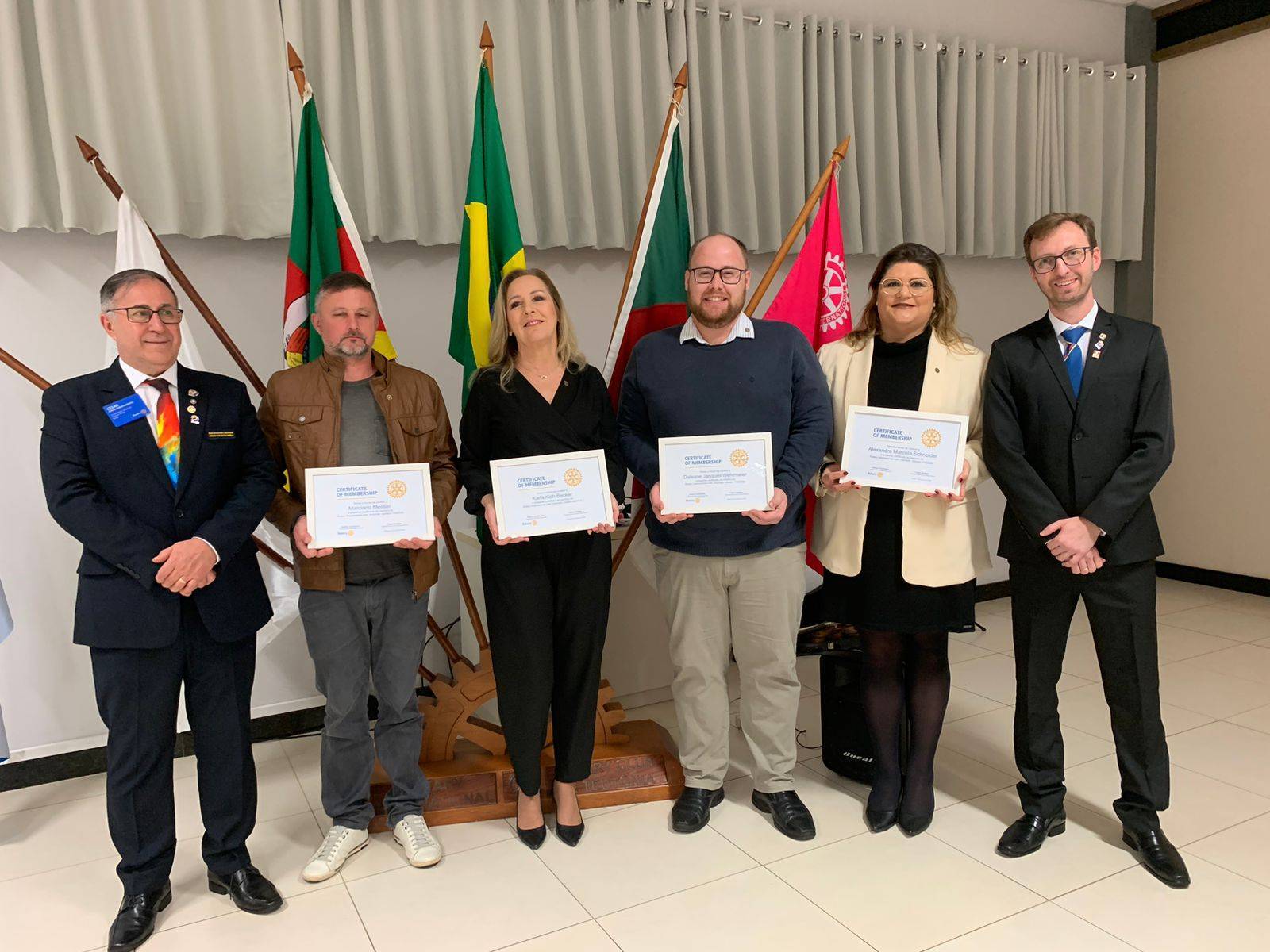 Alexandra Marcela Schneider, Dalvane Janquiel Wehrmeier, Karla Kich Becker e Marciano Messer foram empossados pelos seus padrinhos e presenteados com o distintivo rotário entregue pelo Governador. Angela Ahlert também ingressa ao clube neste ano rotário, mas por motivos particulares envolvendo as cheias no Vale do Taquari não conseguiu se fazer presente na cerimônia. Sua posse será realizada em breve.