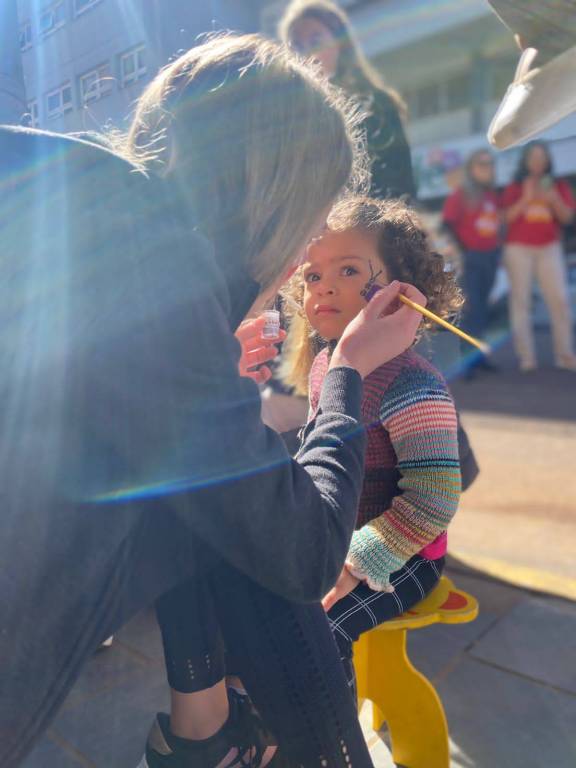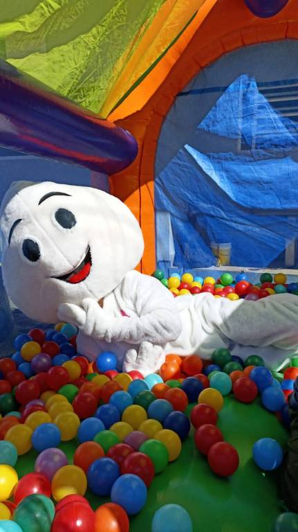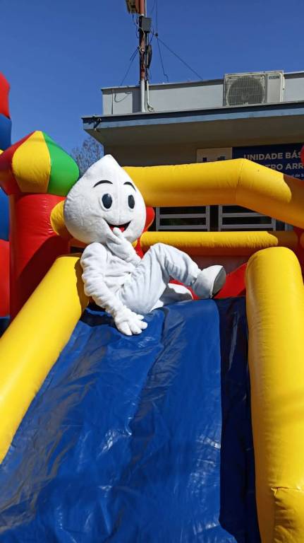 Disponibilizamos para as crianças que ali estavam, brinquedos infláveis, amenizando a ansiedade que sempre aparece antes ou depois da vacinação. Em meio a inúmeros sorriso e balões coloridos, o Interact nos auxiliou na pintura do rosto das crianças.