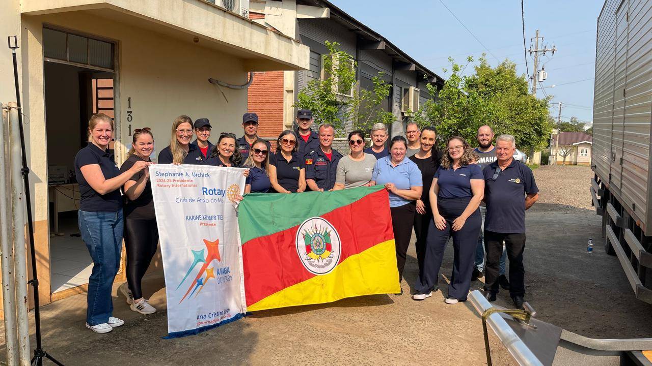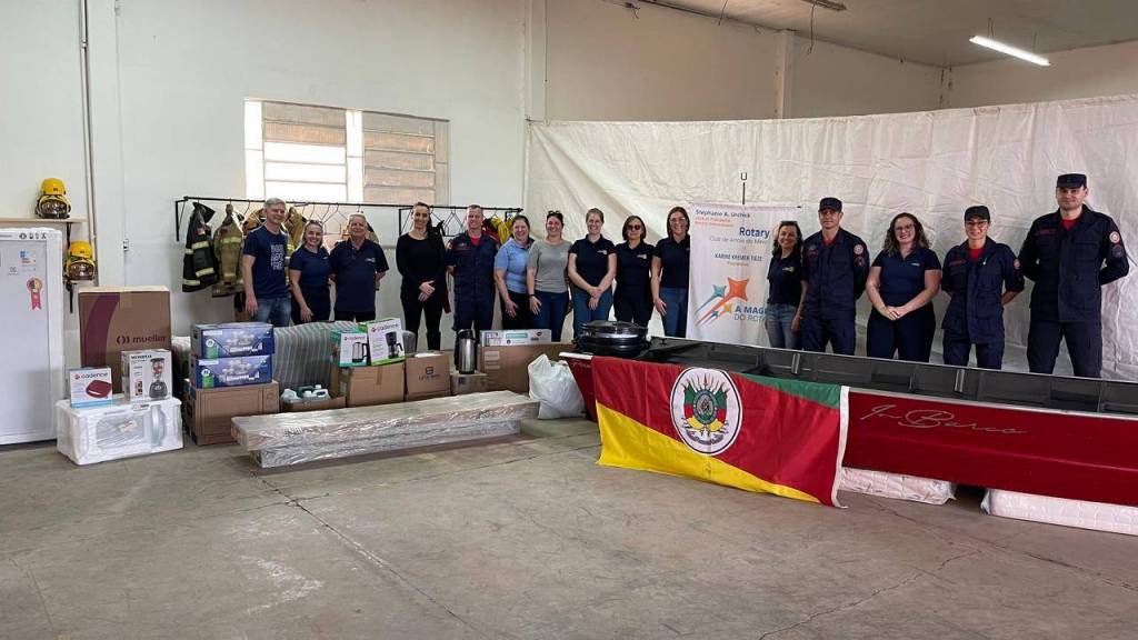 “Através do contato com o Rotary Clube de Arroio do Meio, entendemos que a principal demanda do município no momento eram itens para auxiliar na estruturação do ponto provisório dos Bombeiros Militares, que foi criado de forma emergencial para suprir as demandas pós catástrofes climáticas e que agora está BUSCANDO SE FIXAR DE FORMA PERMANENTE no munícipio”, explica a coordenadora da Parceiros Voluntários de Garibaldi, Renata Cimadon.