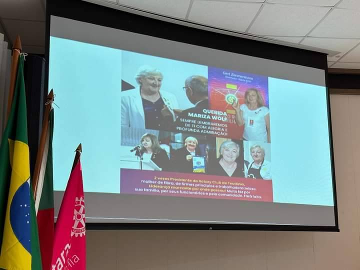 O companheiro Fabio Zorthea, aproveitou o momento para homenagear a companheira Mariza Wolf, que faleceu recentemente. Mariza foi uma mulher e rotariana exemplar na comunidade de Teutônia. Ela esteve a frente de grandes diretorias em associações do munícipio e foi presidente do Rotary Club de Teutônia em dois anos rotários.