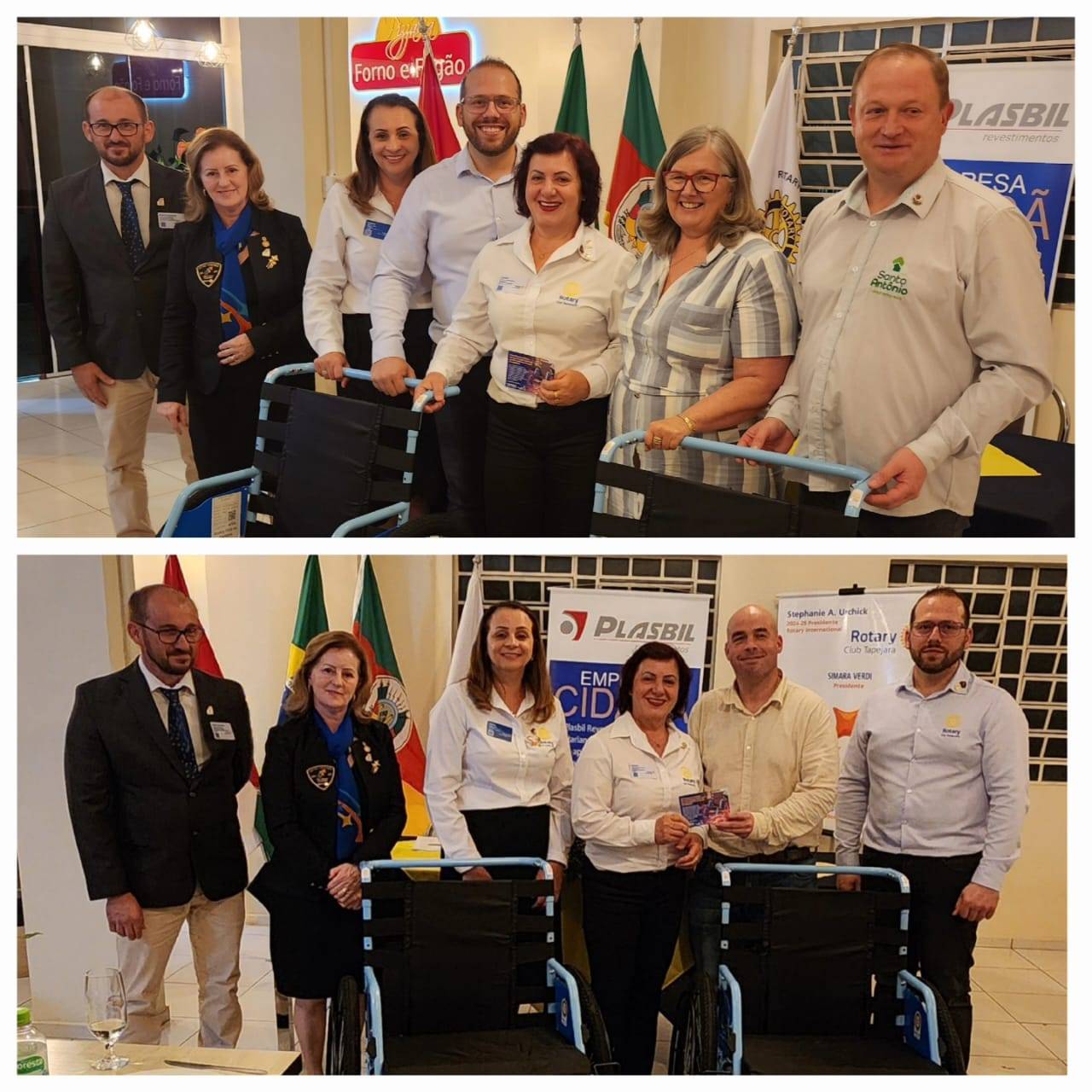 No decorrrer da noite do dia 24 de outubro, que foi marcada por muitos momentos especiais, o Rotary Club Tapejara também realizou a entrega de mais 04 cadeiras de rodas do Projeto Mobilidade Para Todos, sendo 04 cadeiras para o Espaço Geriátrico Santo Antônio e 02 cadeiras para o Hospital Santo Antônio.