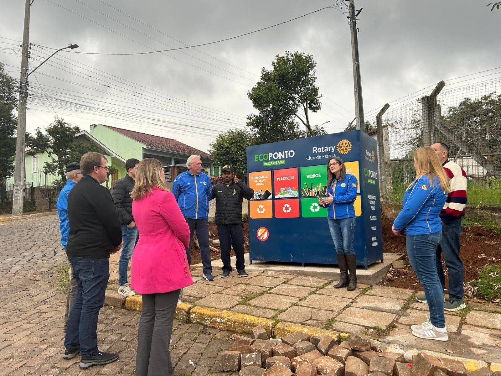 Nesta quarta-feira, 26 de junho, foi entregue o terceiro ECOPONTO em Estrela, desta vez no Bairro Imigrantes. A iniciativa está alinhada com um dos pilares do Rotary Internacional: o cuidado com o meio ambiente.